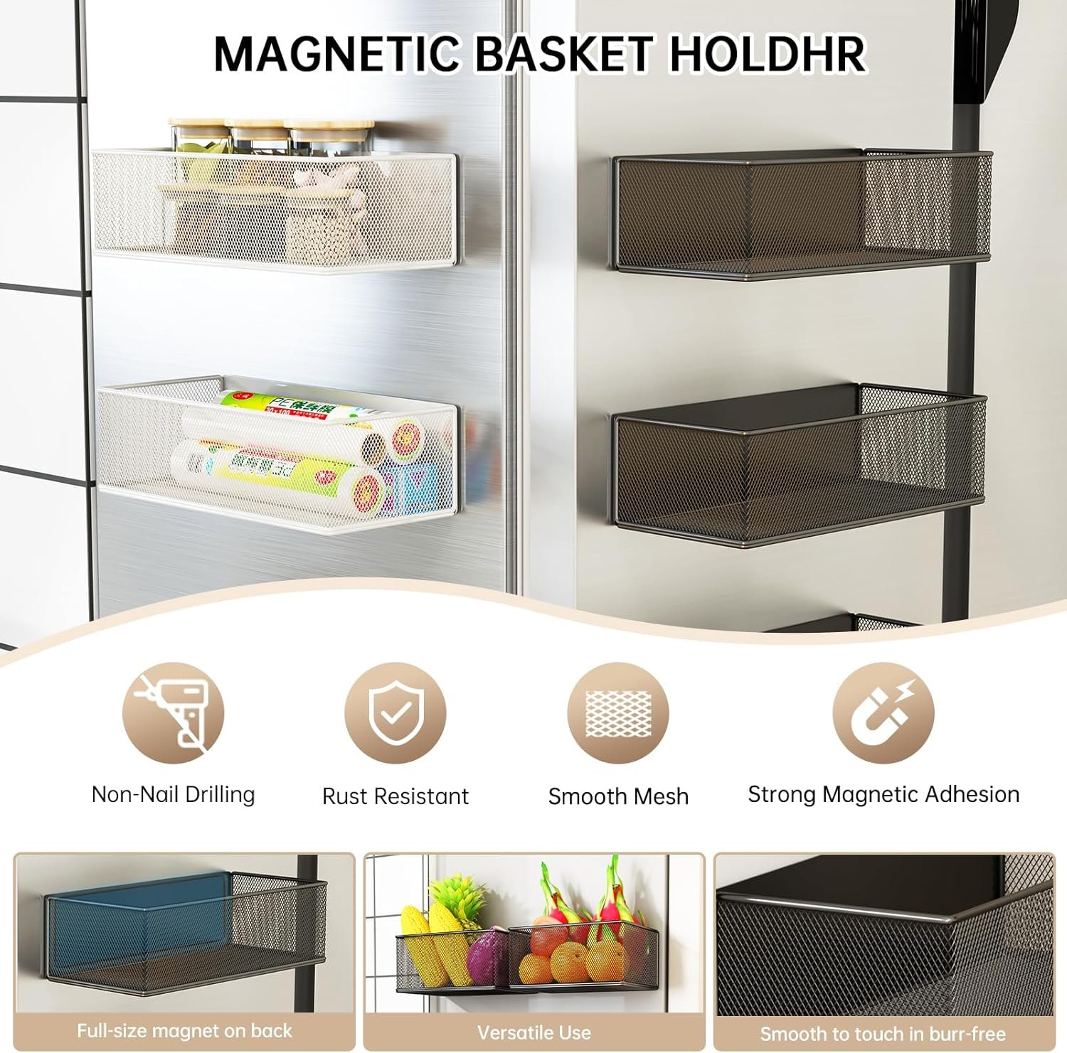 - 【STRONG MAGNETIC ADHESION】- It has a widened magnet attached on the back of basket organizer and with strong magnetic force, which can support up to 16 lbs. It would not gradually slide down over the fridge. It can be firmly adsorbed by only touching the surface of the refrigerator or other metal surfaces and won’t rust.